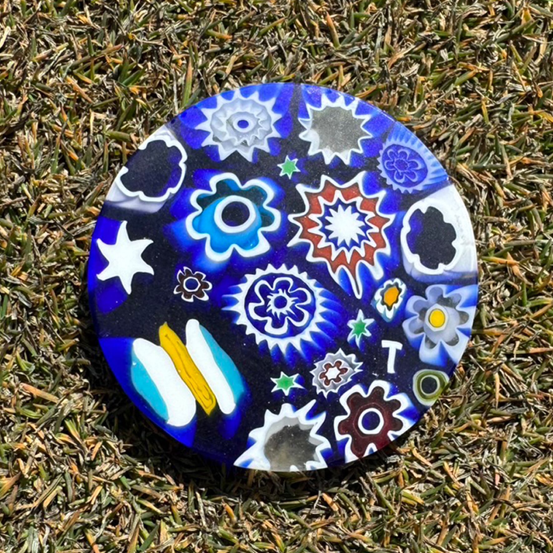 371Venetian glass Marker【イニシャル"T"-White-Navy マグネット付き】6600-370