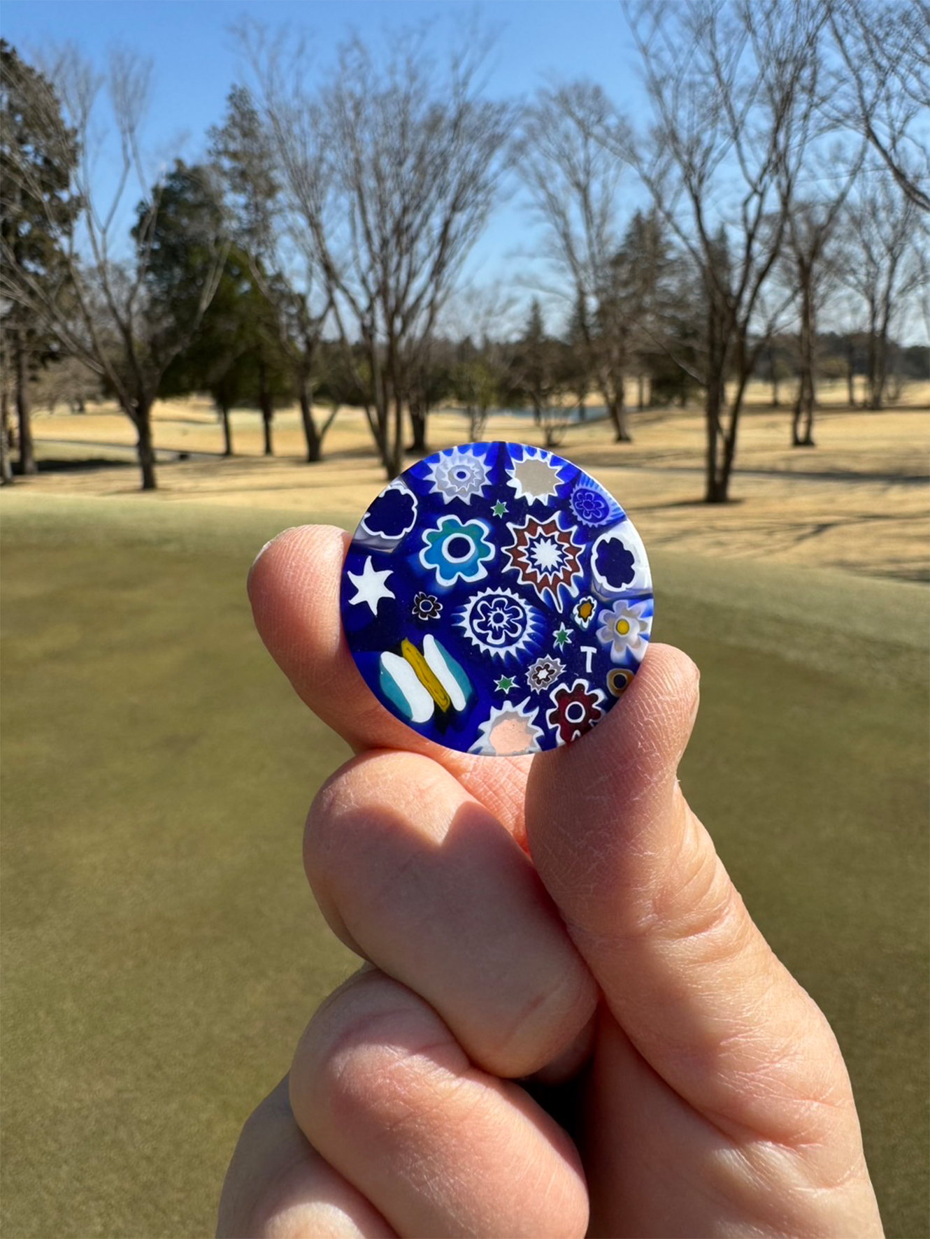 371Venetian glass Marker【イニシャル"T"White-Navy マグネット付き】6600-370