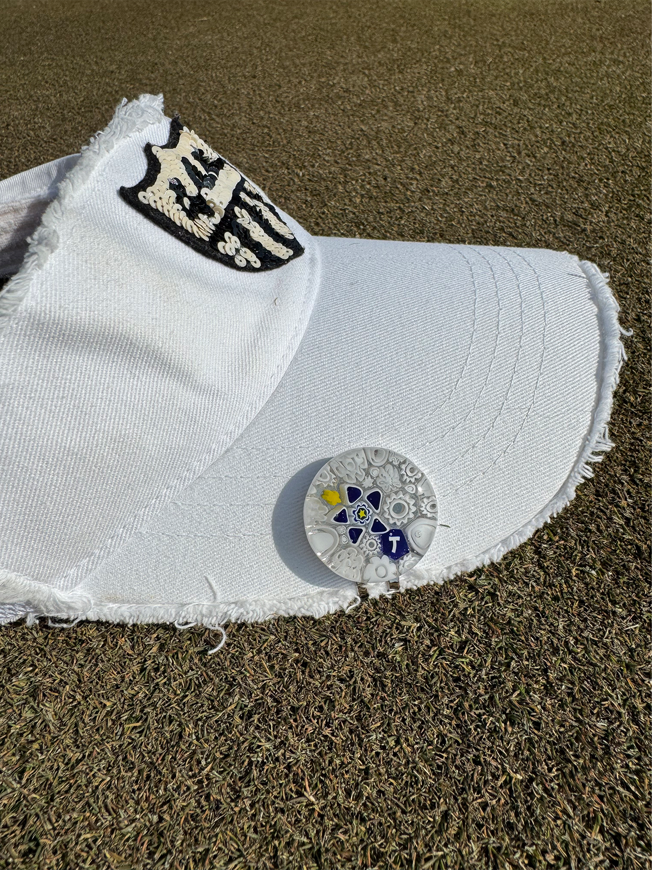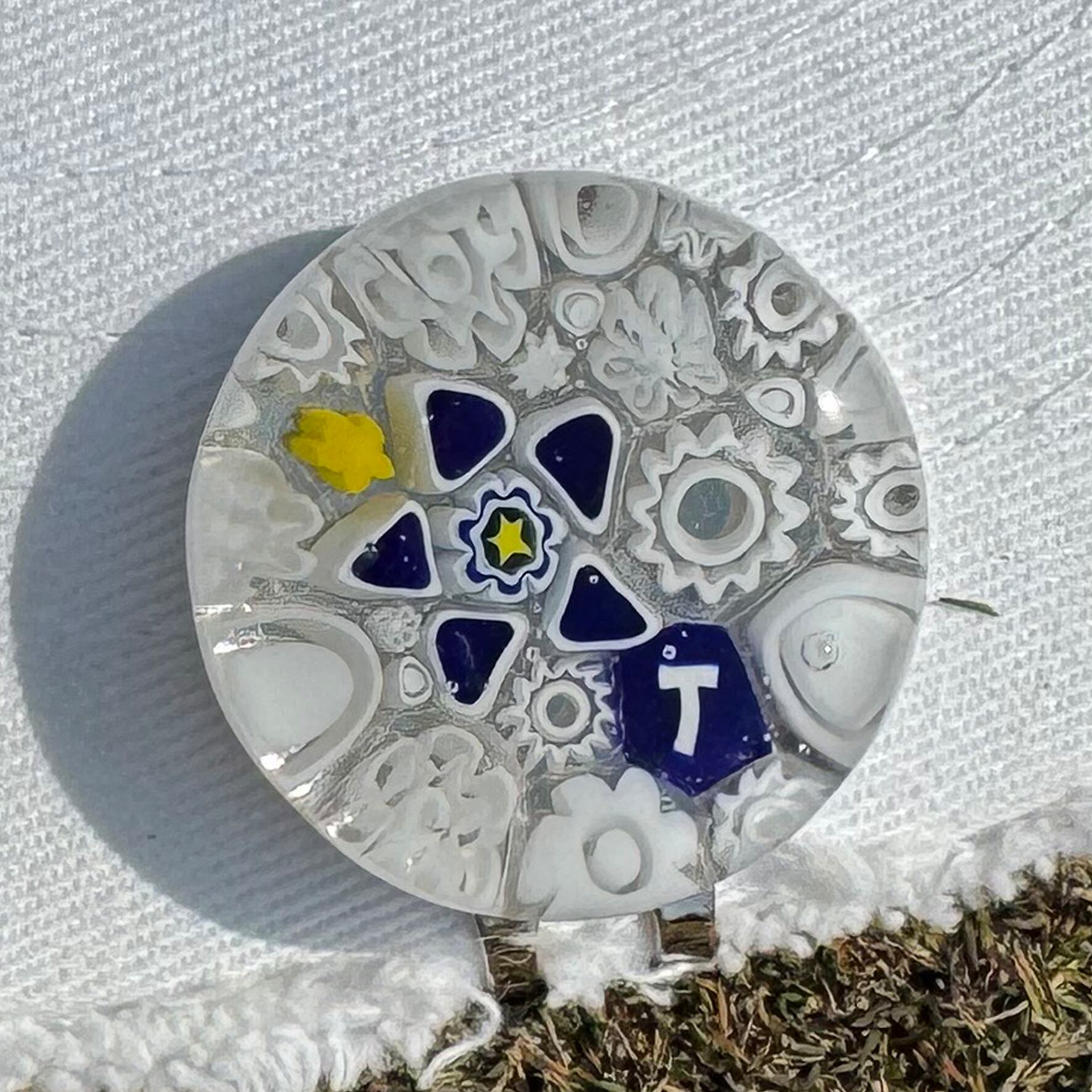 370Venetian glass Marker【イニシャル"T"White-Navy マグネット付き6600-370