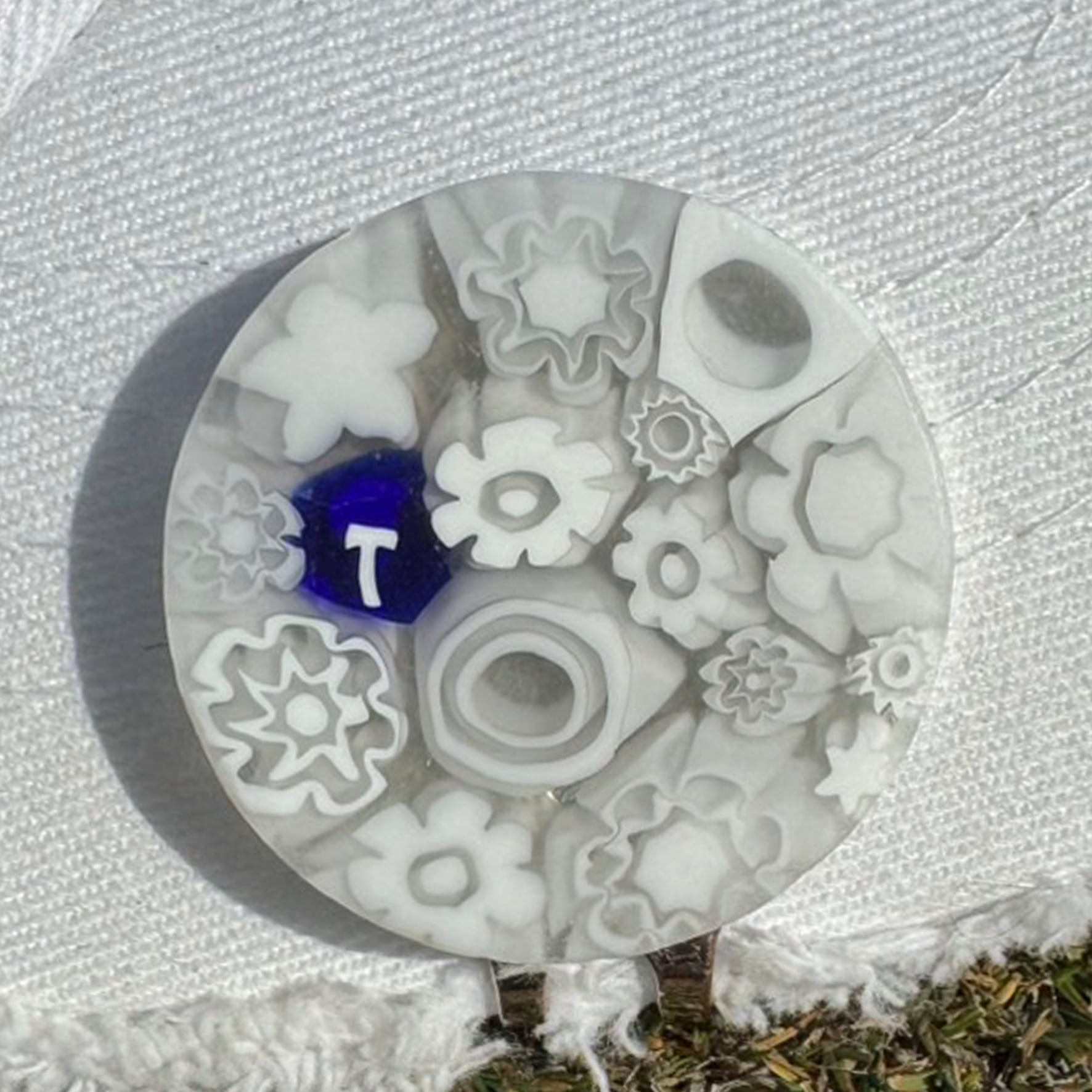 372Venetian glass Marker【イニシャル"T"-White マット マグネット付き】7000-372