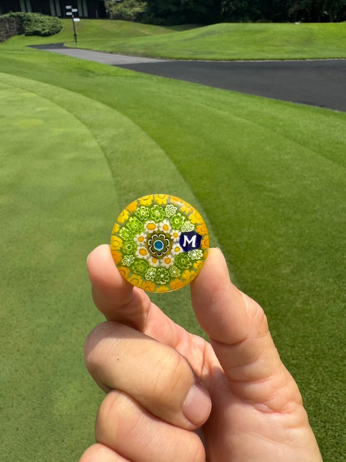 407Venetian glass Marker【イニシャル"M"Green-Yellow-Flowerマグネット無し】6000