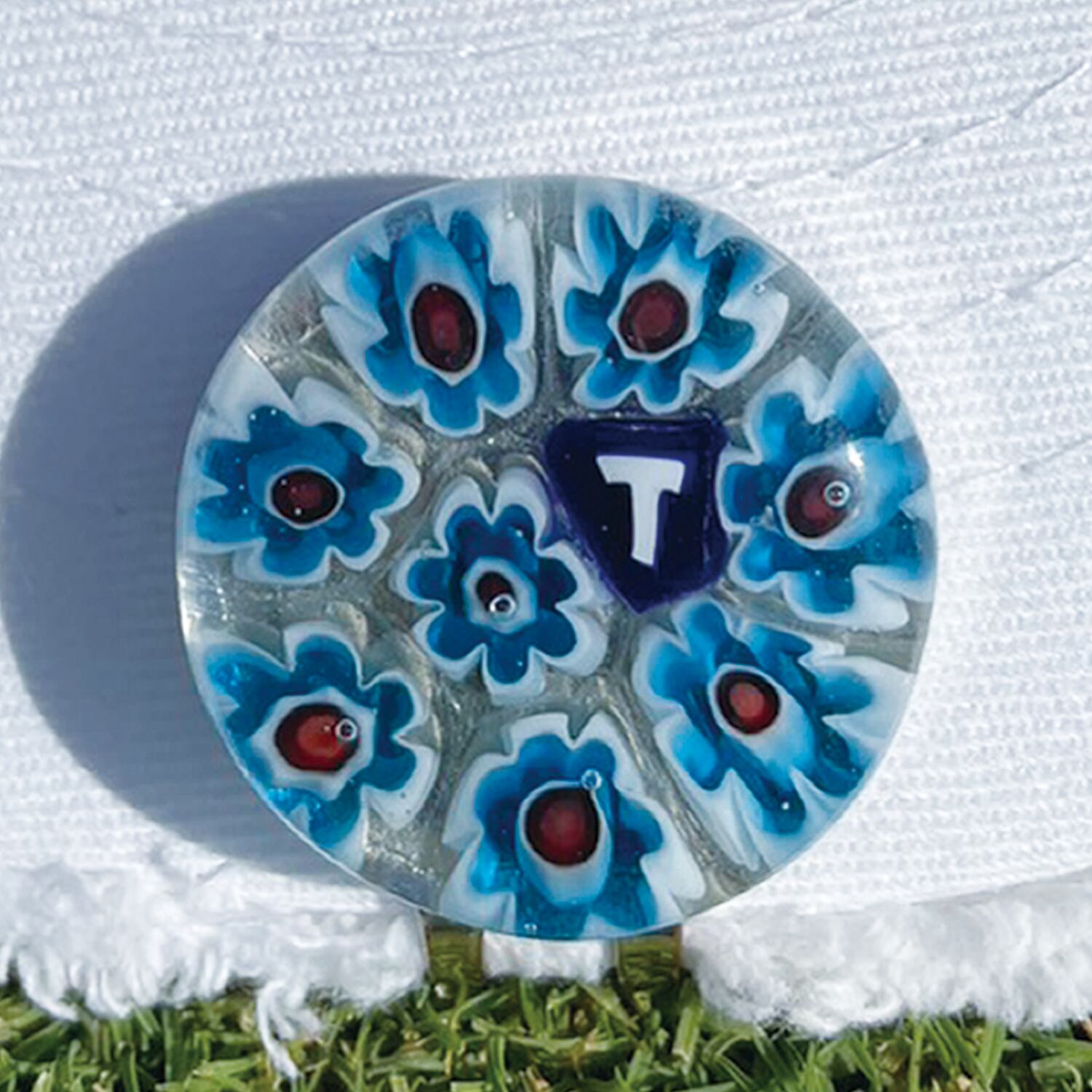 262 Venetian glass Marker【イニシャル"T" Blue Flowerマグネット付き】6000-262