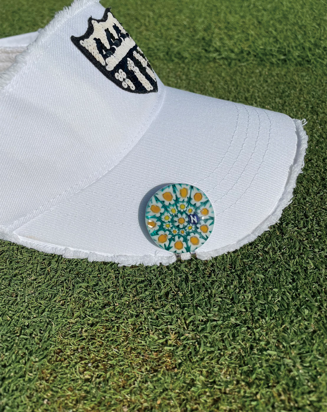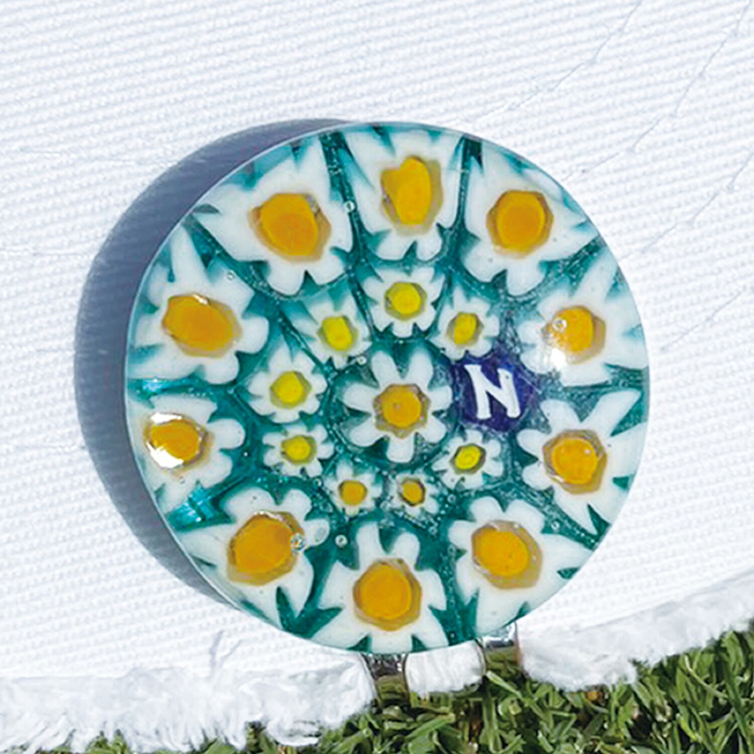 263 Venetian glass Marker【イニシャル"N" Green-Flowerマグネット付き】6600-263