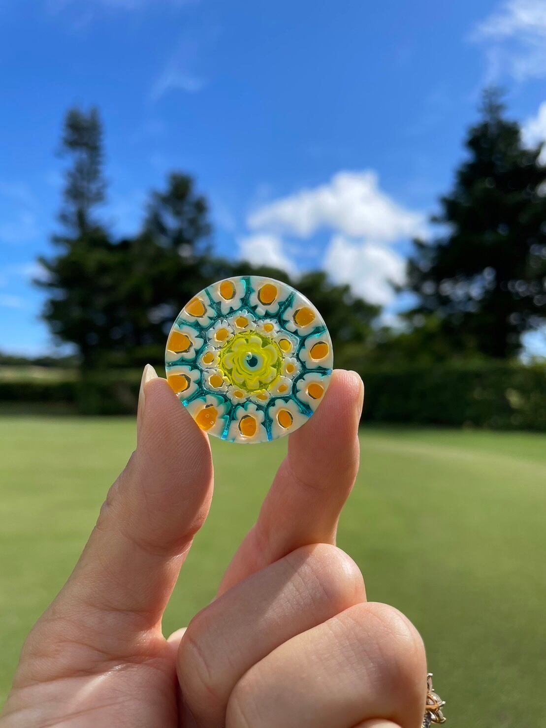 274 Venetian glass Marker【Green-Flower マット マグネット無し】6000-274