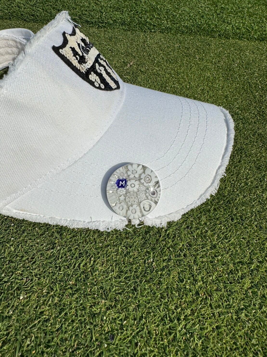 293Venetian glass Marker【イニシャル"M"White-Flower マグネット付き】6600-293