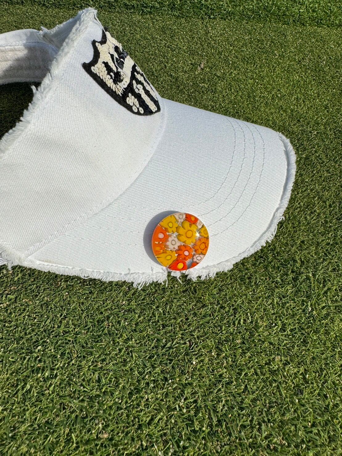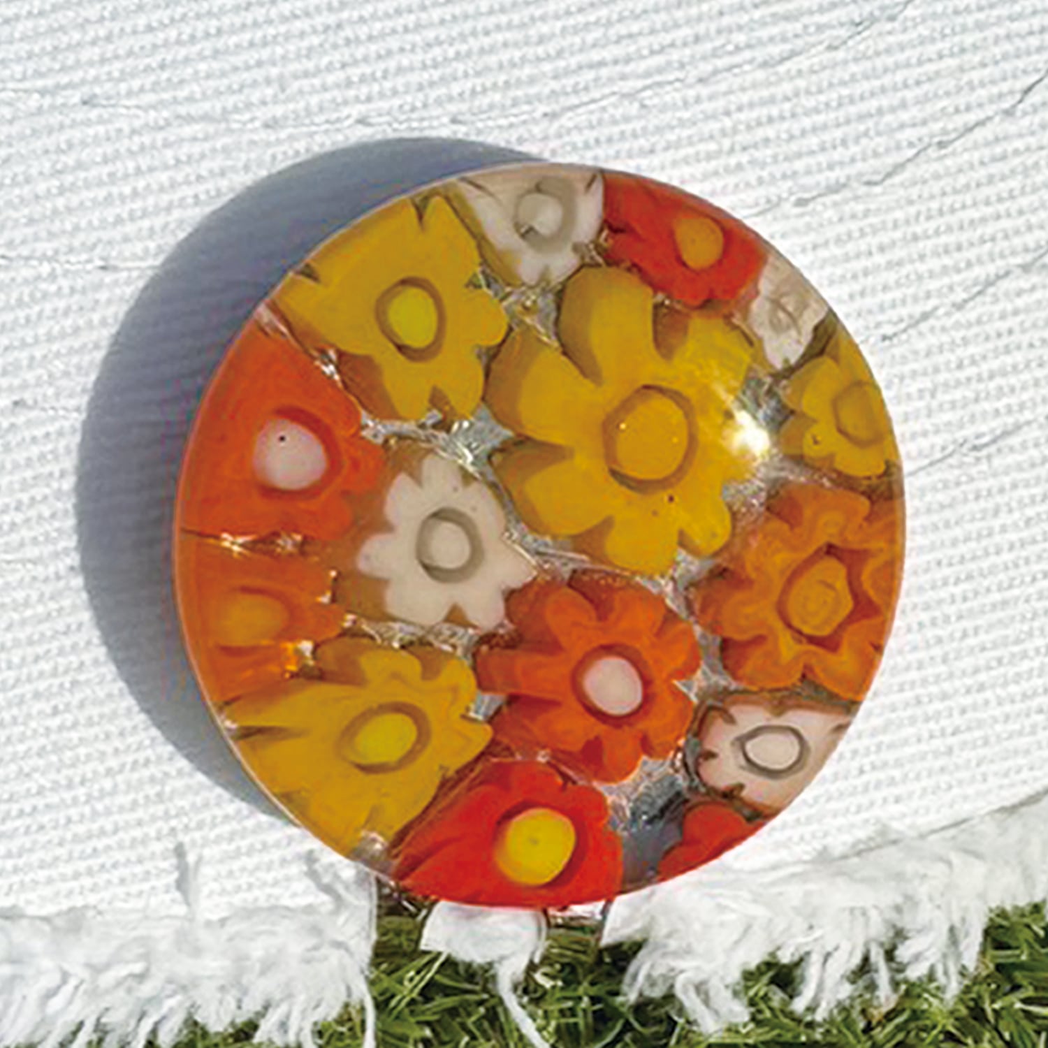 296 Venetian glass Marker【Yellow-Orange-Flower マグネット付き】6600-296