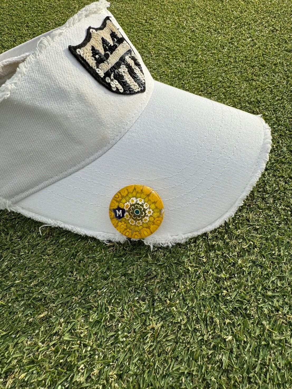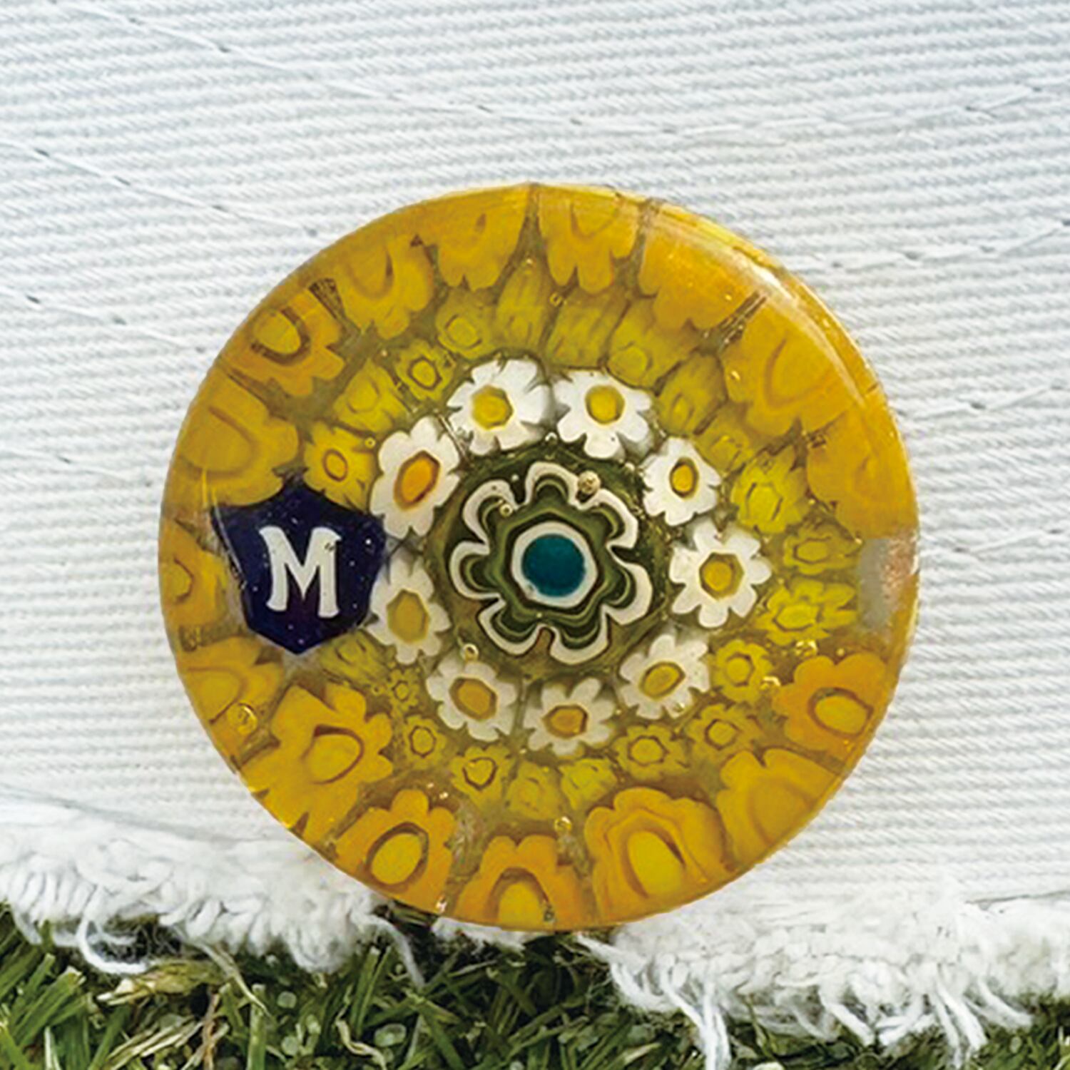 304 Venetian glass Marker【イニシャル"M" Yellow-Flower マグネット付き】6600-304