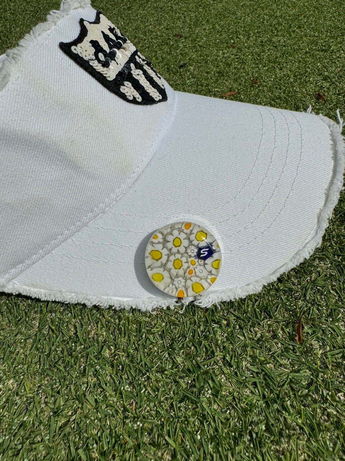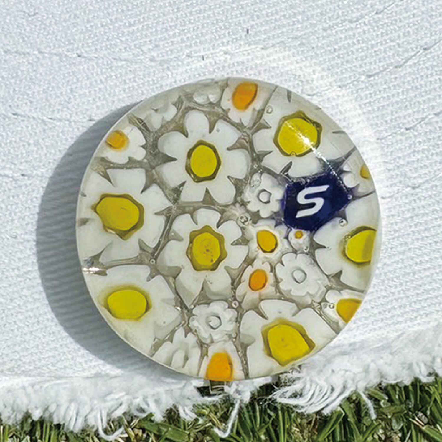 313Venetian glass Marker【イニシャル"S"White-Flower マグネット付き】6600-313
