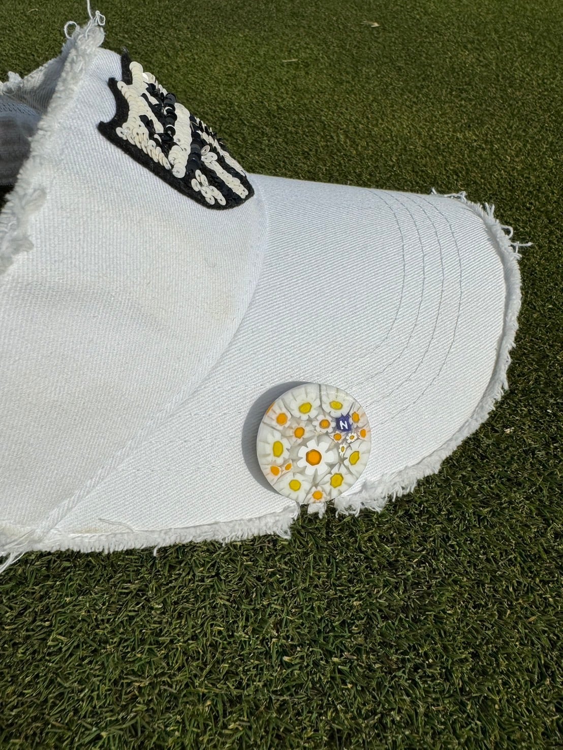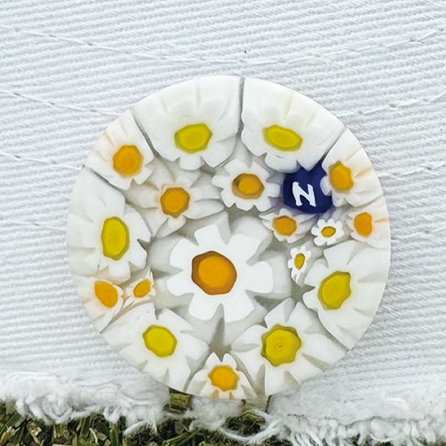 319Venetian glass Marker【イニシャル"N"White-Flower マット マグネット付き】7000-319