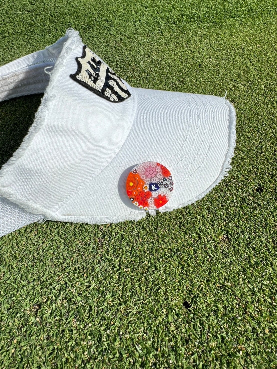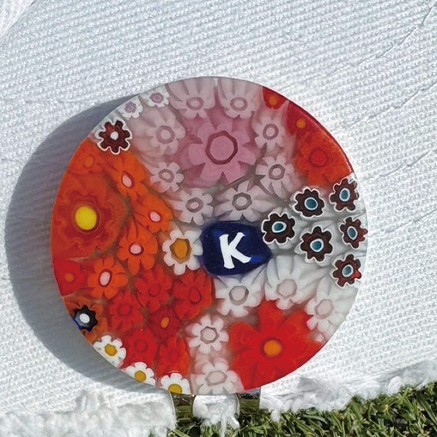 345Venetian glass Marker【イニシャル"K"Colorful-Flower マット マグネット付き】7000-345