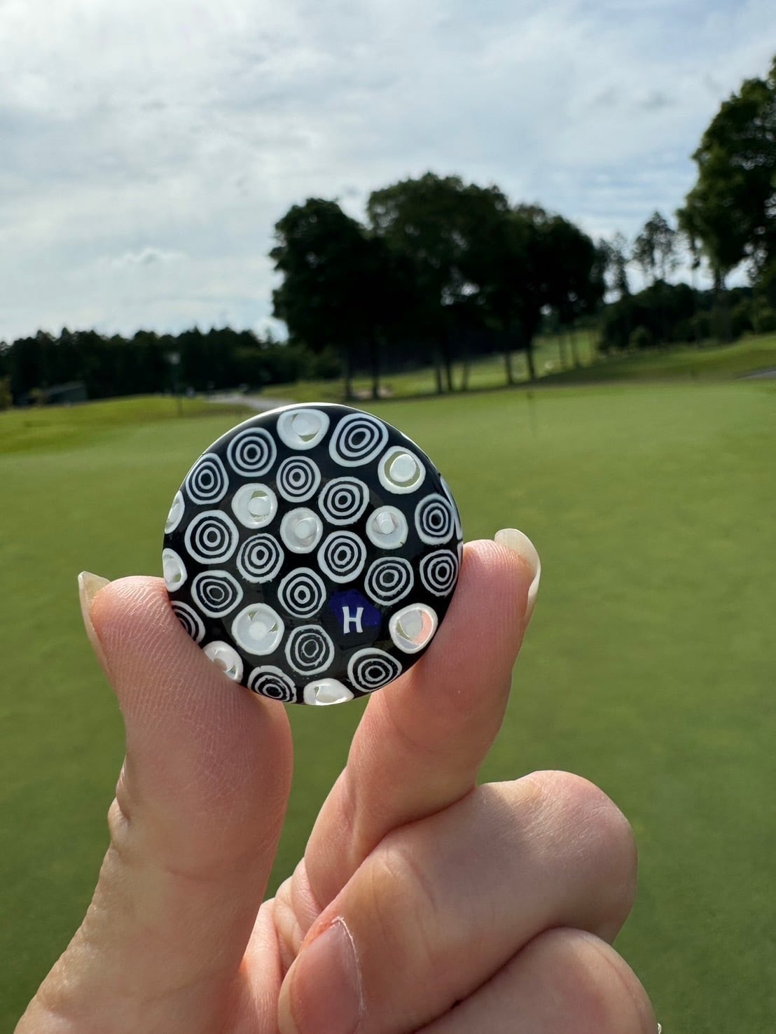 366Venetian glass Marker【イニシャル"H"Black-Circle マグネット無し】6000-366